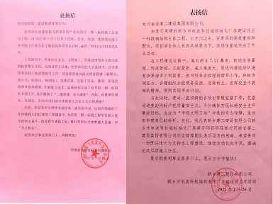 112022.02新乡建工建设有限公司和河南新飞智家科技有限公司向bat·365(中文)官方网站-登录入口发来表扬信 -